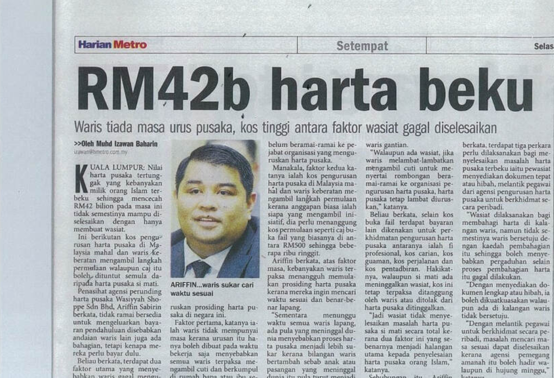 Segala aset yang anda ada juga akan dibekukan dan proses tuntutan serta pembahagian harta pusaka kepada keluarga anda juga akan mengambil masa yang sangat lama. Bukan itu sahaja, ianya akan menelan kos yang sangat tinggi.